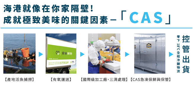 - 獨家引進日本Cells Alive System細胞活存保鮮技術,以不破壞細胞結構的新型冷凍技術,保有水產品原本鮮度與美味。
