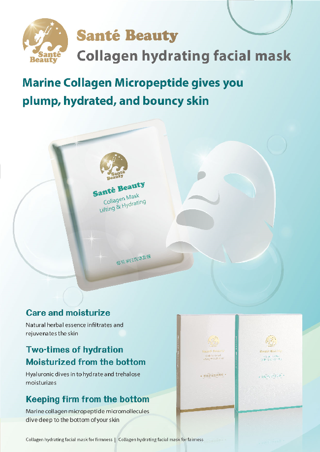 現代の生活では、肌は外部環境からの影響を受け、時間の経過によって弾力と水分を失います。 Santé Beautyコラーゲン潤いマスクは、アルギレリン、ヒアルロン酸と紅藻エキスを配合することにより、肌を引き締め、弾力とハリをもたらし、小じわやたるみを改善し、細胞の老化に対抗します。